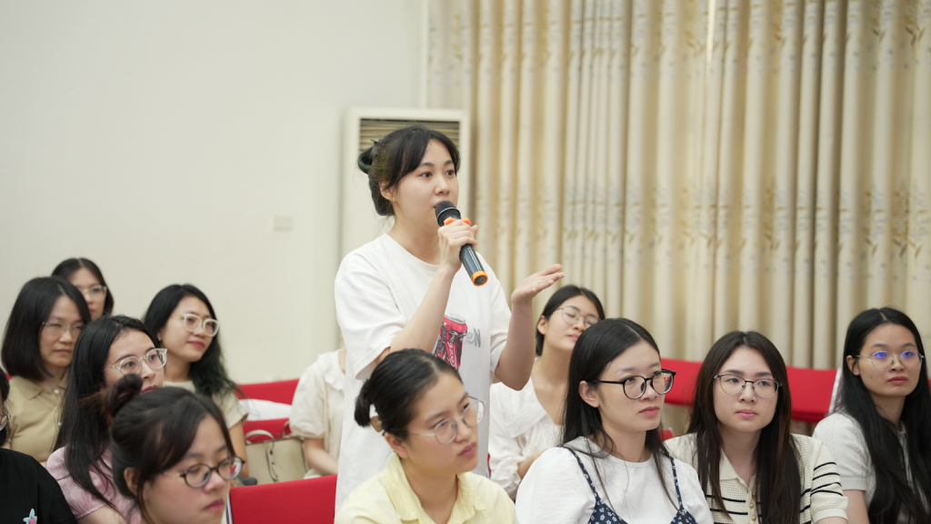 Tiếp đó, đại diện Đại học Ngoại ngữ Văn Tảo đã có phần giao lưu, trao đổi trực tiếp với giảng viên và sinh viên Trường Đại học Ngoại ngữ. Không khí buổi giao lưu diễn ra sôi nổi, cởi mở, giúp sinh viên có cơ hội tìm hiểu thêm về môi trường học tập, hoạt động giảng dạy cũng như định hướng hợp tác, trao đổi học thuật giữa hai trường.