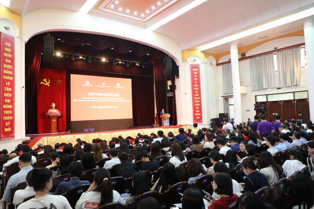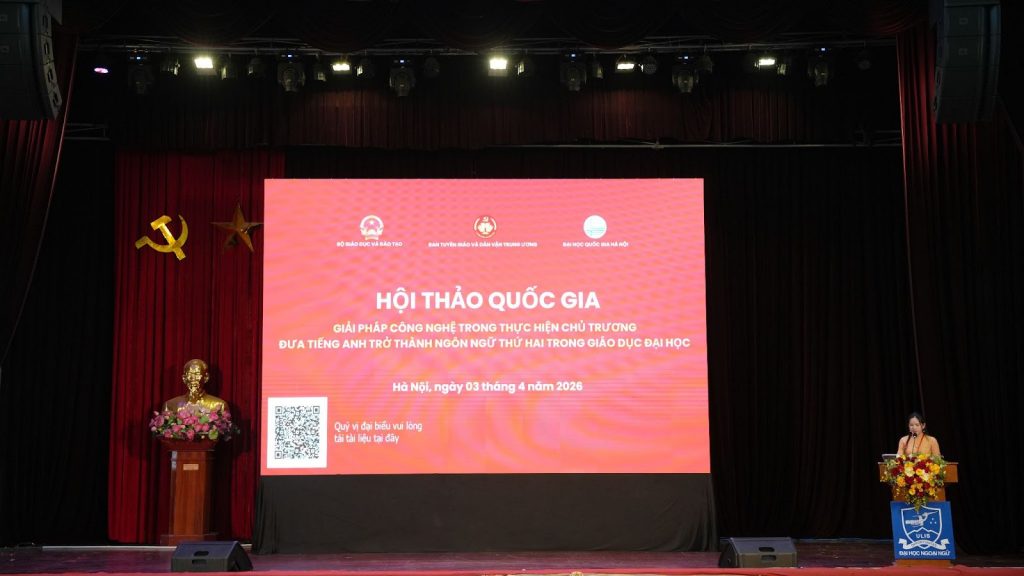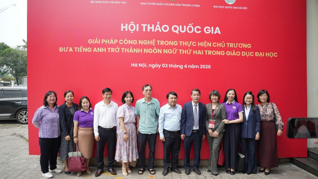 Ngày 3/4/2026, nhằm thực hiện Nghị quyết số 71-NQ/TW của Bộ Chính trị về đột phá phát triển giáo dục và đào tạo, Ban Tuyên giáo và Dân vận Trung ương phối hợp với Bộ Giáo dục và Đào tạo, Đại học Quốc gia Hà Nội đã chủ trì và giao cho Trường Đại học Ngoại ngữ tổ chức Hội thảo quốc gia với chủ đề “Giải pháp công nghệ trong thực hiện chủ trương đưa tiếng Anh trở thành ngôn ngữ thứ hai trong giáo dục đại học”.